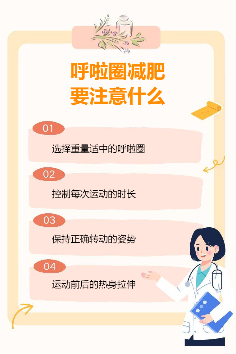 呼啦圈減肥要注意選擇合適呼啦圈、控制運動時間、保持正確姿勢、做好熱身與拉伸等。