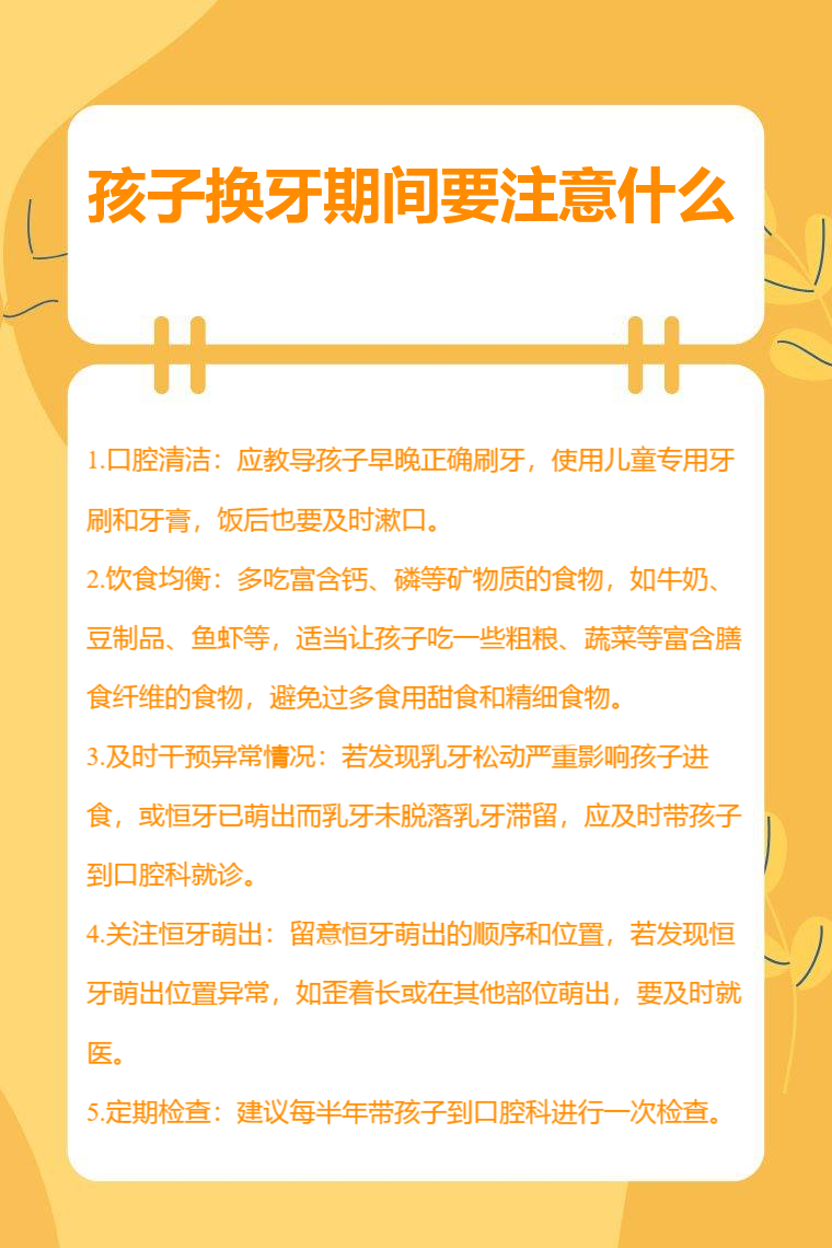 孩子換牙期間要注意口腔清潔、飲食均衡、及時干預異常情況、關注恆牙萌出、定期檢查等。