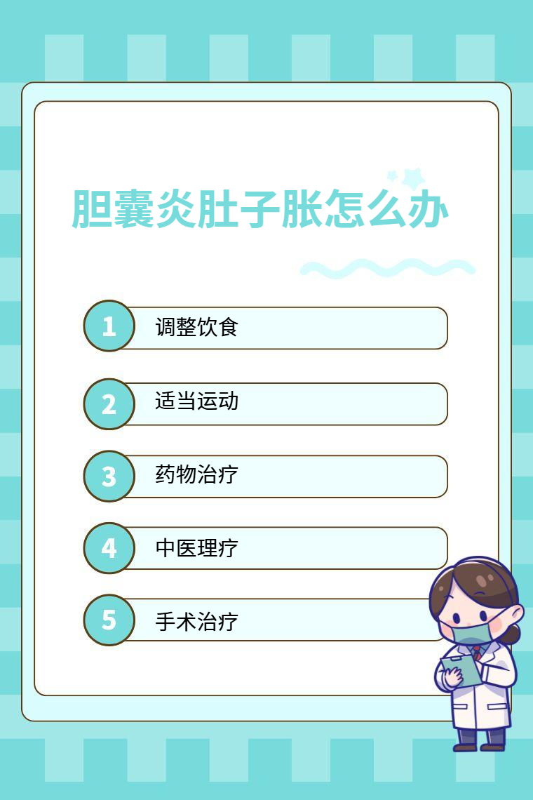 膽囊炎肚子脹可通過調整飲食、適當運動、藥物治療、中醫理療、手術治療等方法緩解。