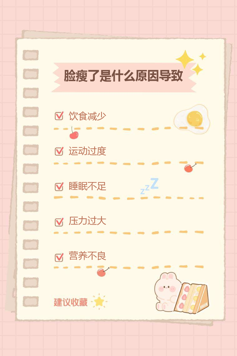 1. 飲食減少:攝入食物量明顯降低,熱量供應不足,身體消耗自身脂肪和肌肉來維持能量需求,從而導致臉部變瘦。需合理規劃飲食,保證每日攝入足夠熱量,均衡搭配各類營養素,增加主食、肉類、蔬果等食物攝入。