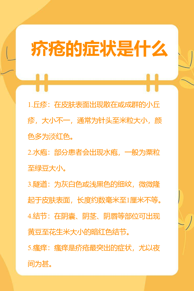 5.瘙癢:瘙癢是疥瘡最突出的症狀,尤以夜間為甚,這是由於疥蟲在夜間活動較為活躍,其分泌的毒素刺激皮膚神經末梢所致,嚴重影響睡眠和日常生活。