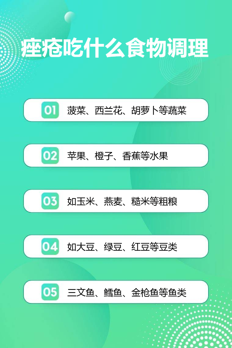 痤瘡患者可通過食用蔬菜、水果、粗糧、豆類、魚類等食物進行調理。