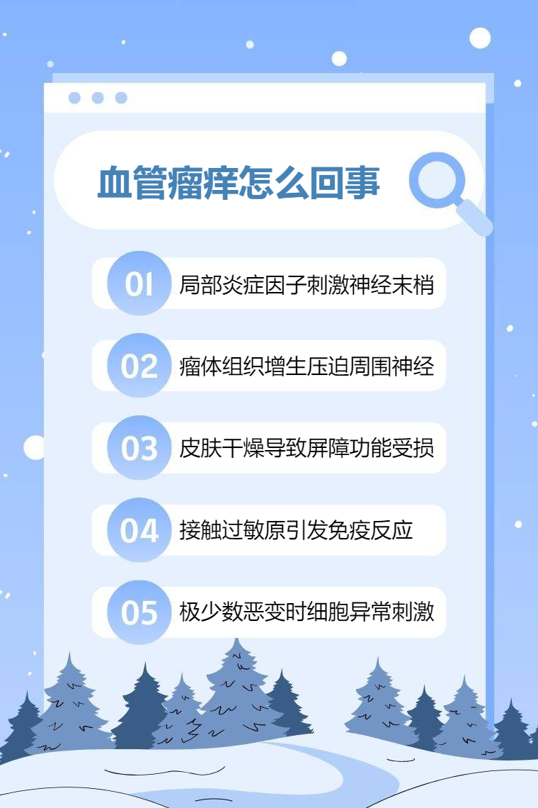 1. 炎症刺激:血管瘤局部受到細菌等病原體侵襲引發炎症,炎症因子刺激周圍神經末梢,進而產生癢感。比如日常清潔不當,使得細菌在血管瘤部位滋生,就容易引發炎症,導致瘙癢症狀出現。