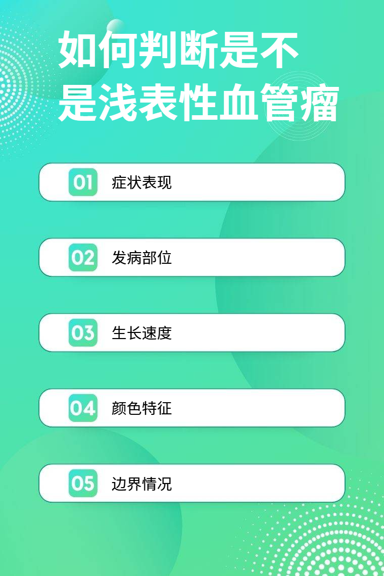 判斷是否為淺表性血管瘤可從症狀表現、發病部位、生長速度、顏色特徵、邊界情況等方面入手。