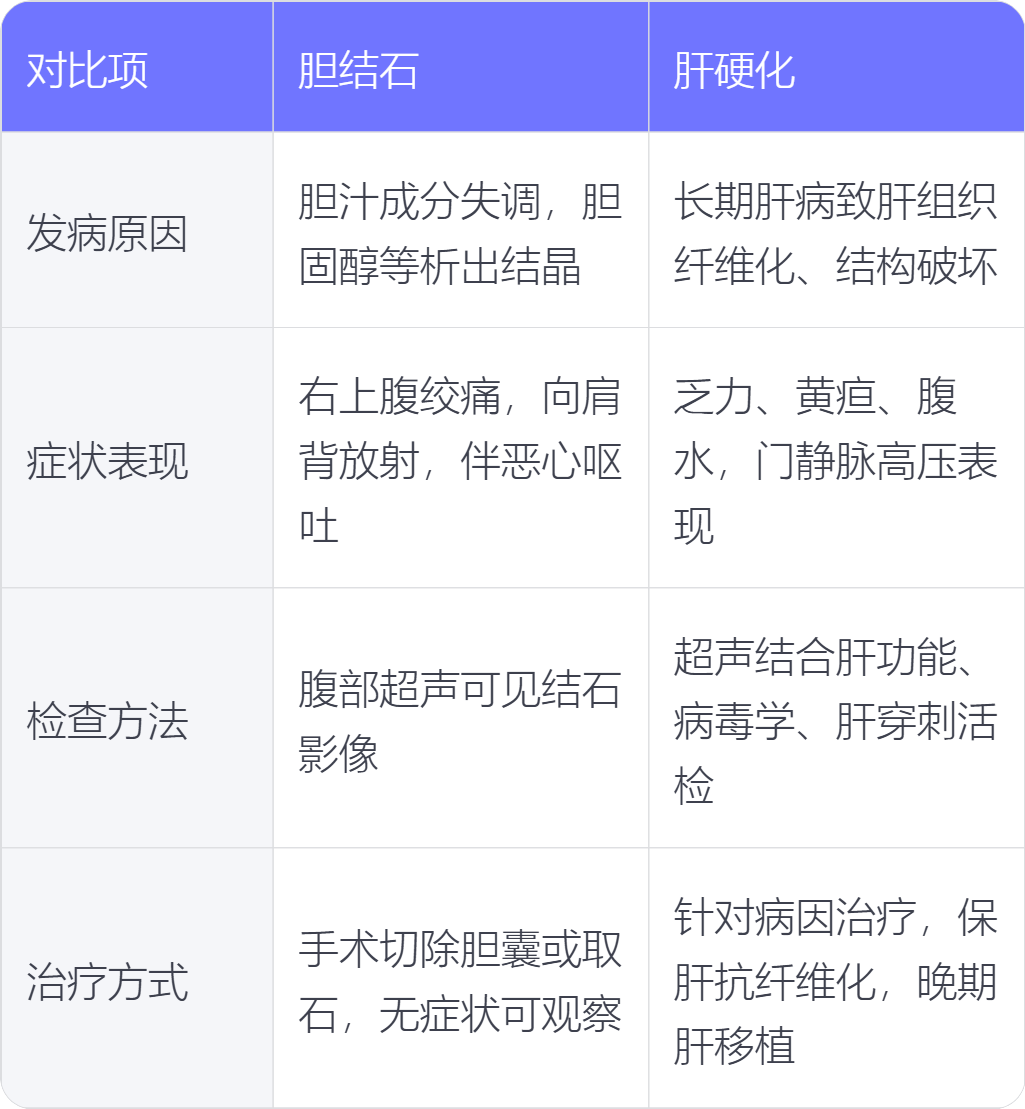 膽結石和肝硬化在發病原因、症狀表現、檢查方法、治療方式上存在不同。