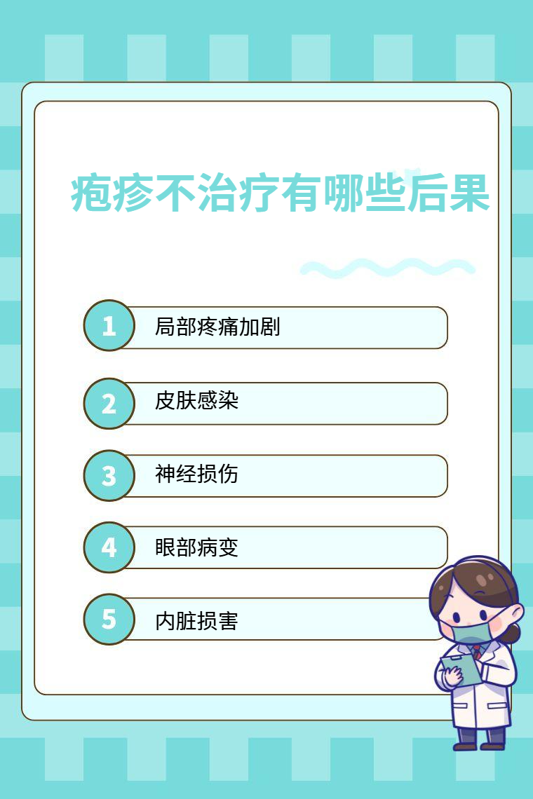 皰疹不治療可能出現局部疼痛加劇、皮膚感染、神經損傷、眼部病變、內臟損害等後果。