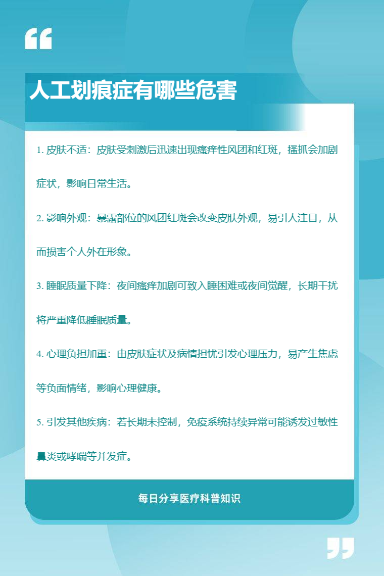 人工划痕症的危害包括皮膚不適、影響外觀、睡眠質量下降、心理負擔加重、引發其他疾病等。
