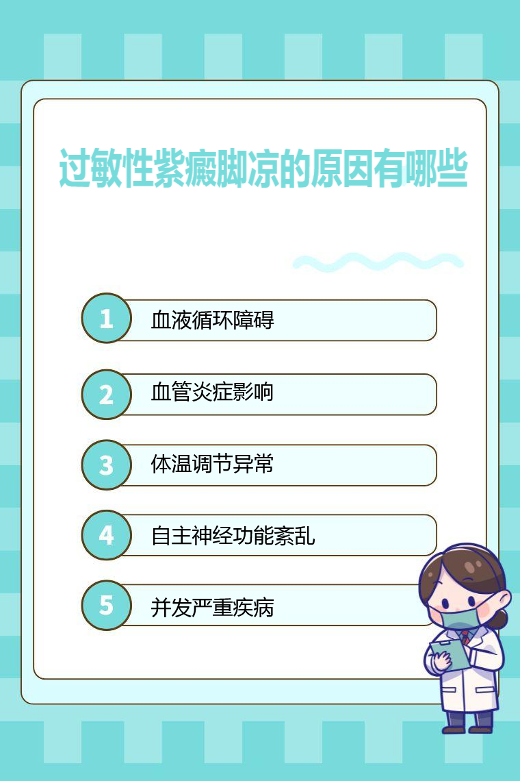 過敏性紫癜腳涼的原因有血液循環障礙、血管炎症影響、體溫調節異常、自主神經功能紊亂、併發嚴重疾病等。