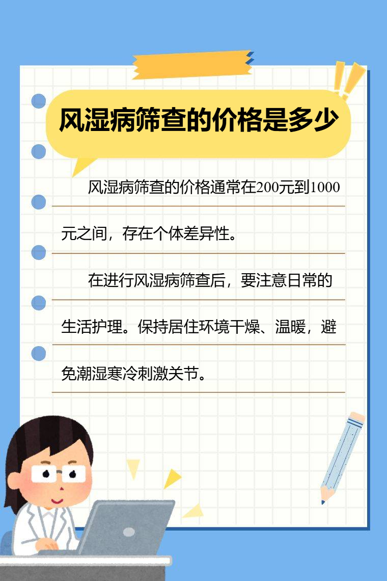 風濕病篩查的價格通常在200元到1000元之間,存在個體差異性。影響費用的因素主要有檢查項目、地區差異、檢測機構等。