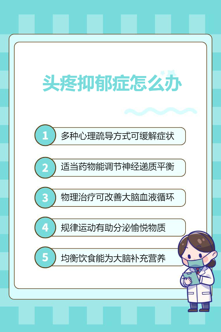 頭疼抑鬱症可通過心理治療、藥物治療、物理治療、運動療法、飲食調節等方法來緩解。