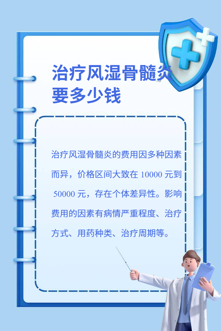 治療風濕骨髓炎的費用因多種因素而異,價格區間大致在 10000 元到 50000 元,存在個體差異性。影響費用的因素有病情嚴重程度、治療方式、用藥種類、治療週期等。