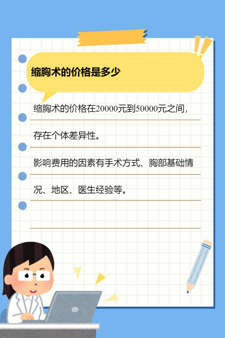縮胸術的價格在20000元到50000元之間,存在個體差異性。影響費用的因素有手術方式、胸部基礎情況、地區、醫生經驗等。