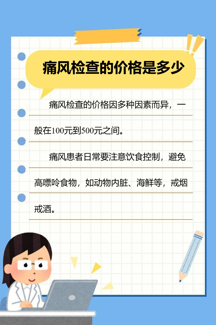 痛風檢查的價格因多種因素而異,一般在100元到500元之間,存在個體差異性。影響費用的因素有檢查項目、地區、醫院性質等。