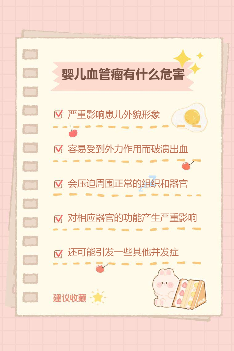 嬰兒血管瘤的危害包括影響外觀、破潰出血、壓迫周圍組織、影響器官功能、引發其他併發症等。