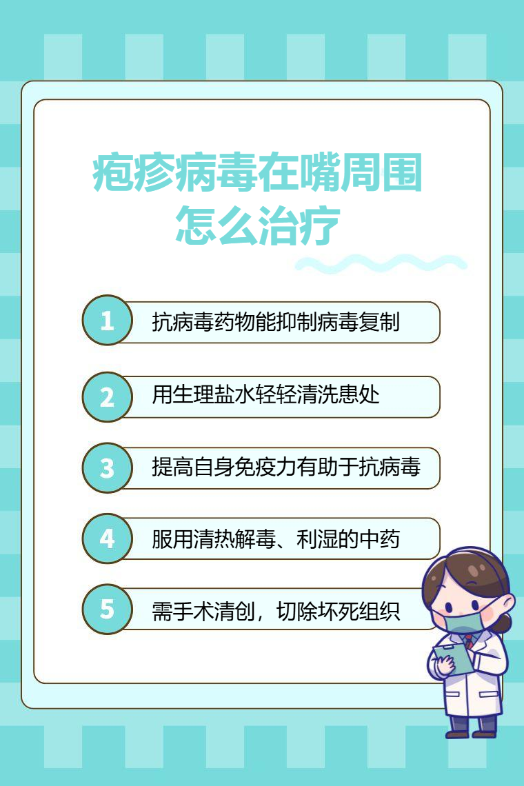 皰疹病毒在嘴周圍可通過抗病毒藥物治療、局部護理、提高免疫力、中醫中藥調理、手術治療罕見情況等方法來應對。