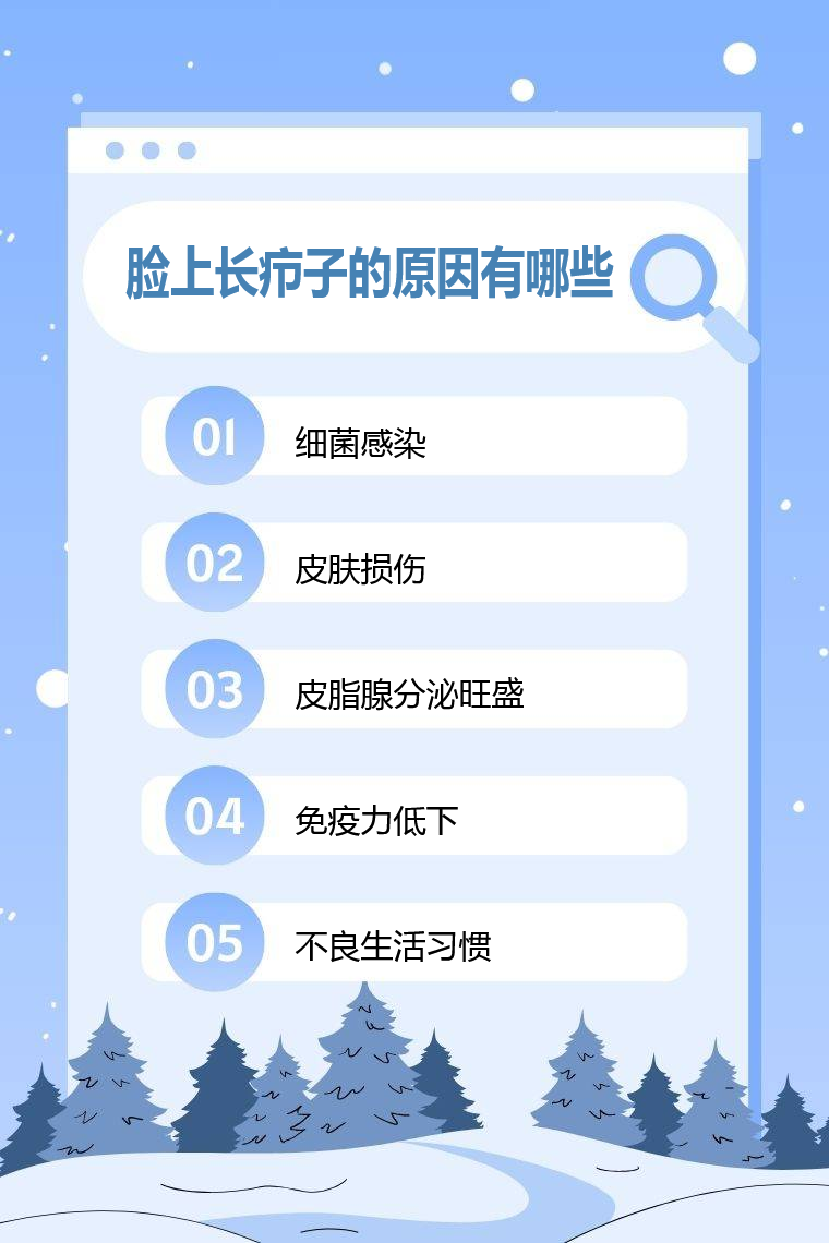 臉上長癤子的原因有細菌感染、皮膚損傷、皮脂腺分泌旺盛、免疫力低下、不良生活習慣等。