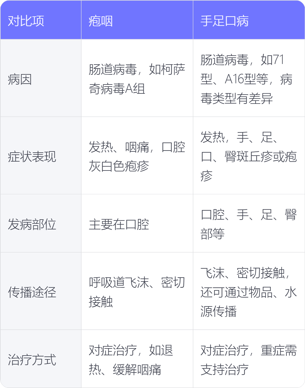皰咽與手足口病在病因、症狀表現、發病部位、傳播途徑、治療方式上存在不同。