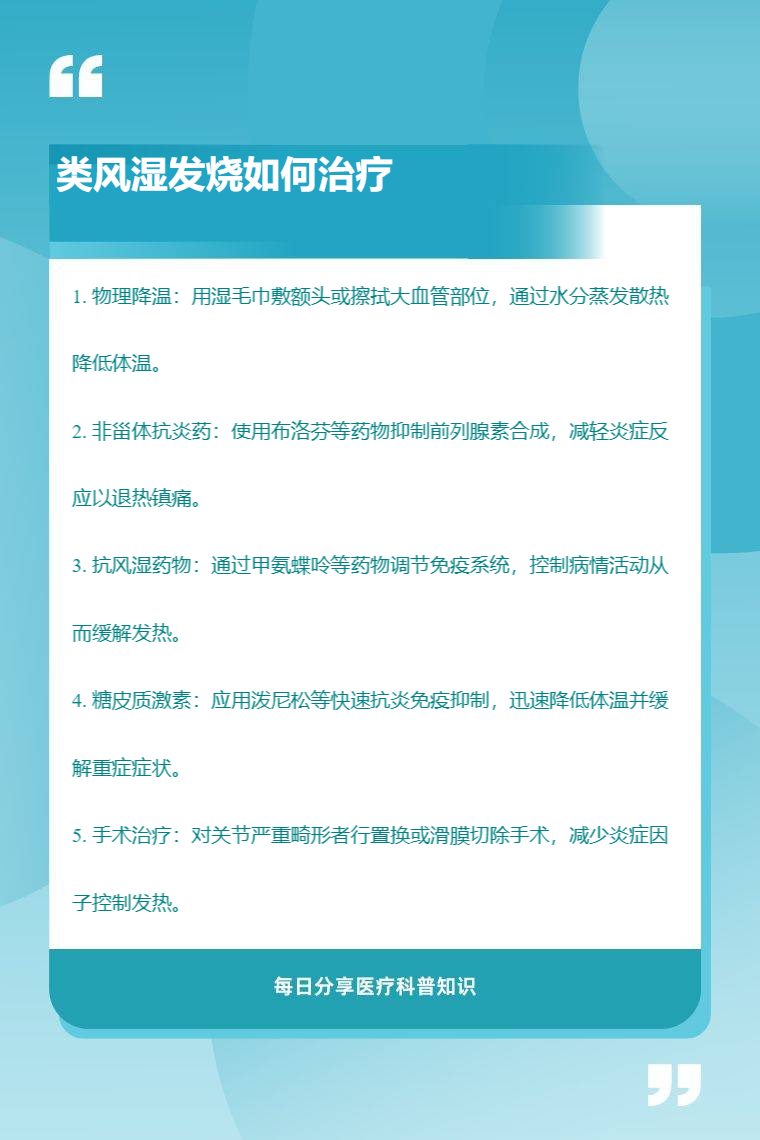 類風濕發燒可通過物理降溫、使用非甾體抗炎藥、應用抗風濕藥物、使用糖皮質激素、手術治療等方法應對。