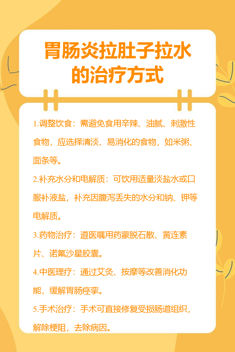 胃腸炎患者拉肚子拉水可通過調整飲食、補充水分和電解質、使用藥物、中醫理療、手術治療等方式應對。
