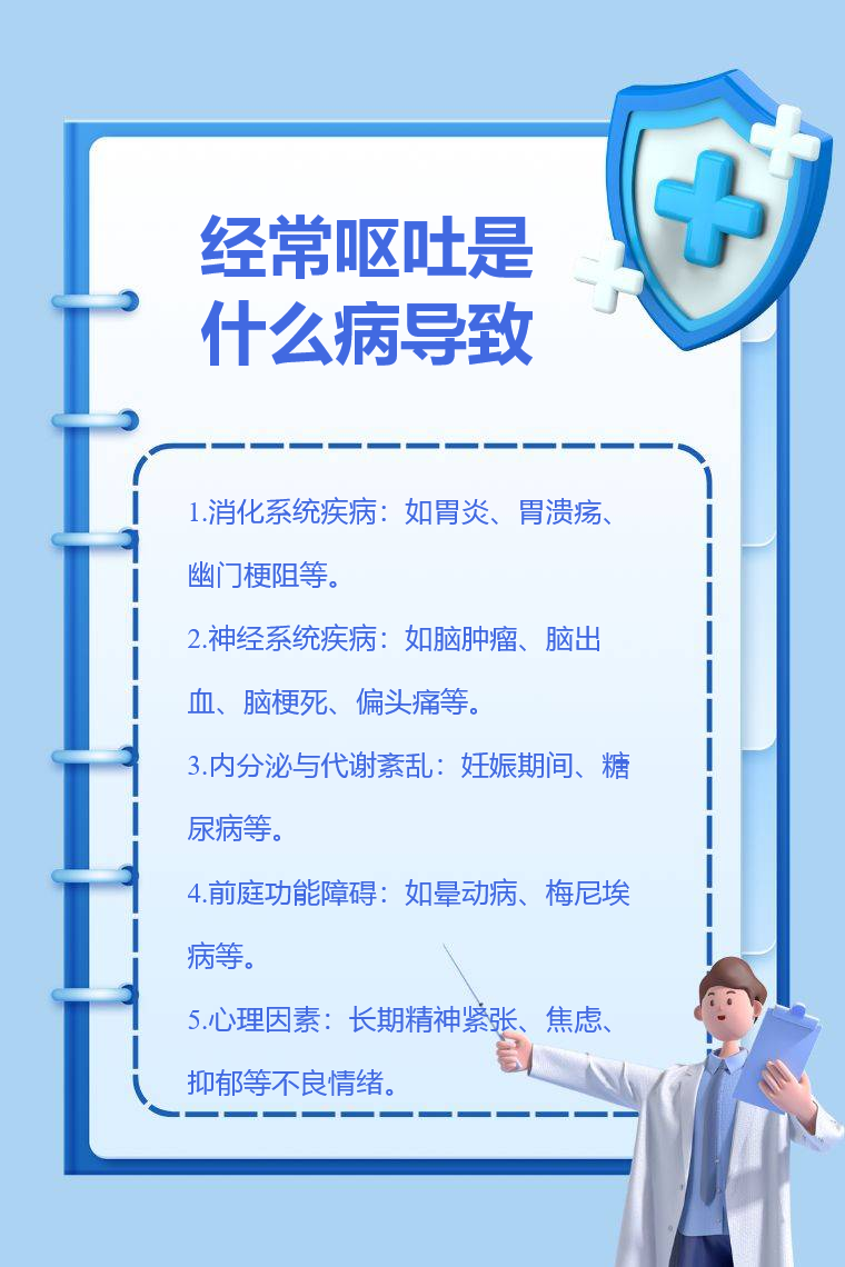 經常嘔吐可能由消化系統疾病、神經系統疾病、內分泌與代謝紊亂、前庭功能障礙、心理因素等導致。