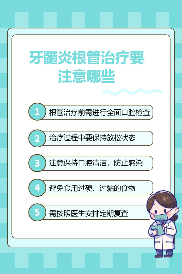 牙髓炎根管治療要注意術前檢查、術中配合、術後護理、飲食調整、定期復查等。