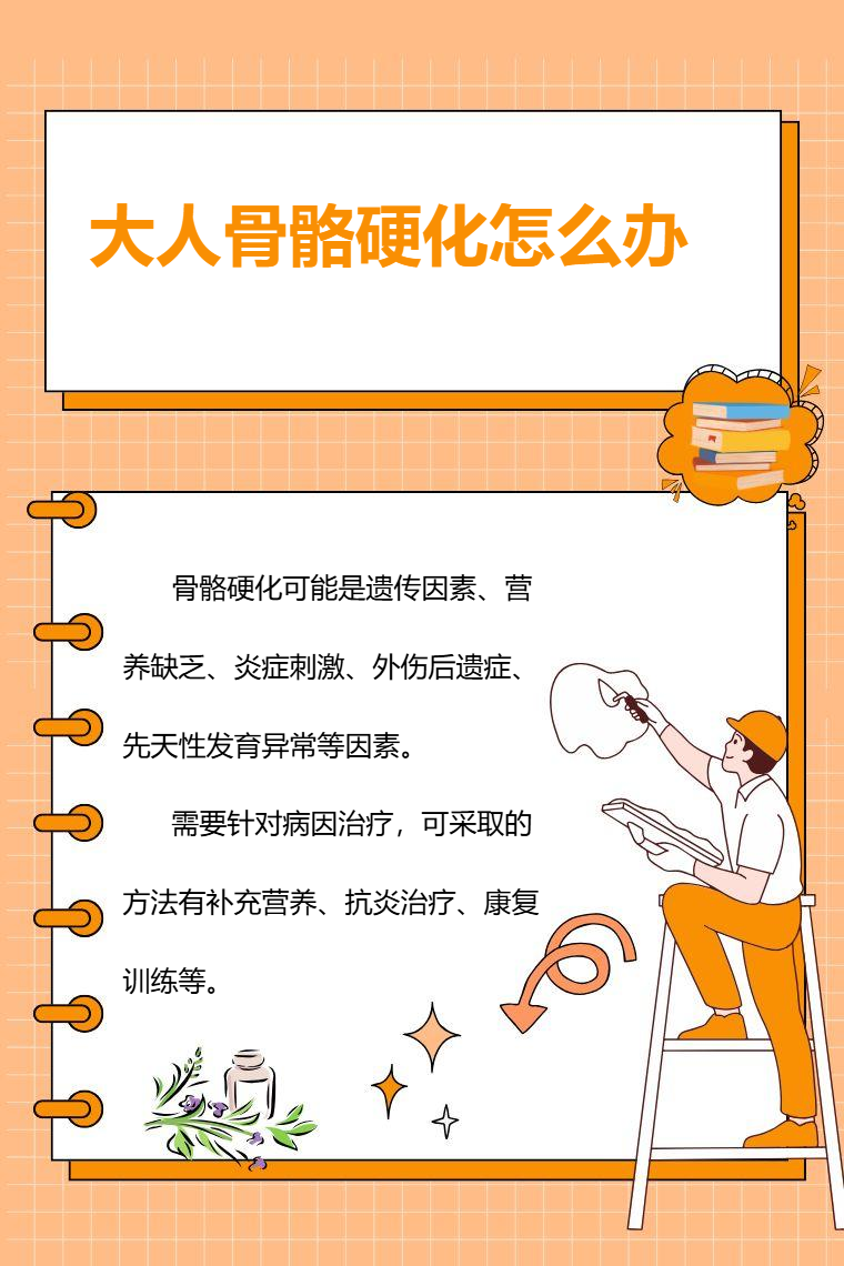 骨骼硬化可能是遺傳因素、營養缺乏、炎症刺激、外傷後遺症、先天性發育異常等因素,需要針對病因治療,可採取的方法有補充營養、抗炎治療、康復訓練等。