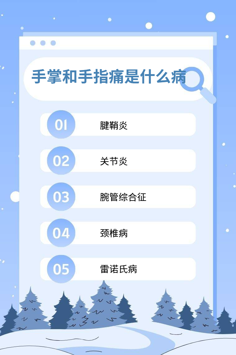手掌和手指痛可能由腱鞘炎、關節炎、腕管綜合徵、頸椎病、雷諾氏病等引起。
