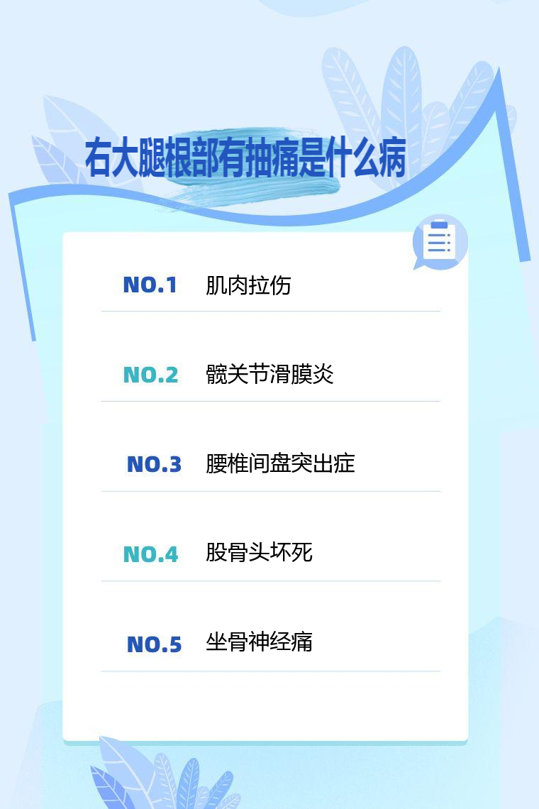 右大腿根部有抽痛可能是由肌肉拉傷、髖關節滑膜炎、腰椎間盤突出症、股骨頭壞死、坐骨神經痛等情況引起。