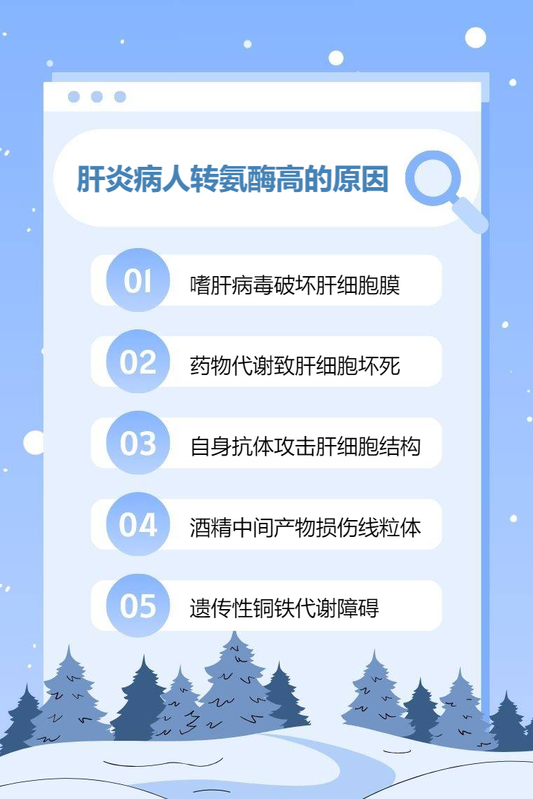 肝炎病人轉氨酶高的原因常見的有病毒感染、藥物損傷、自身免疫異常、酗酒、遺傳代謝缺陷等。