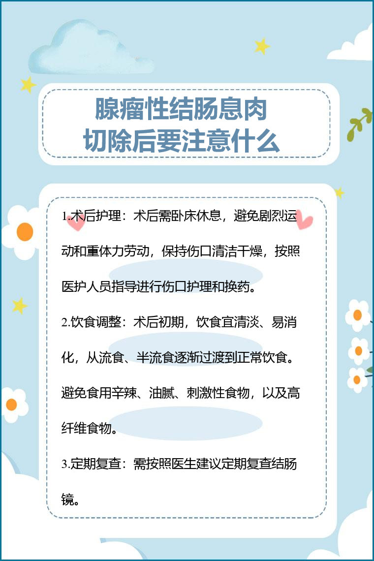 腺瘤性結腸息肉切除後患者要注意術後護理、飲食調整、定期復查等。
