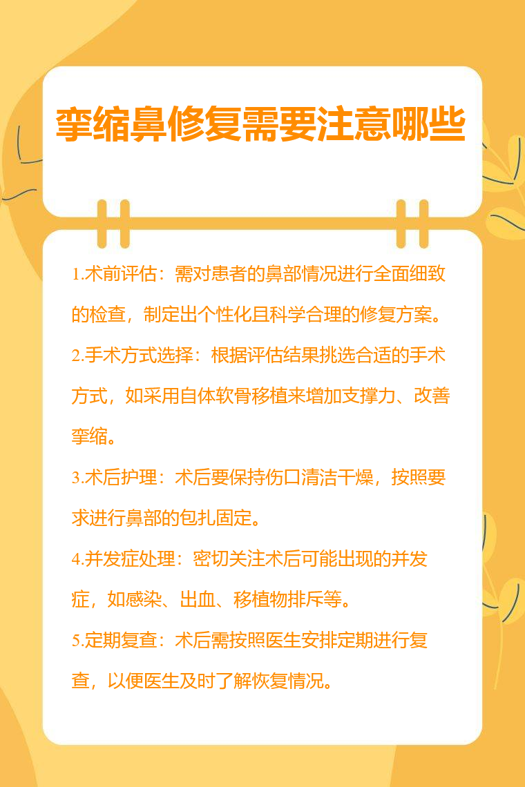 攣縮鼻修復需要注意術前評估、手術方式選擇、術後護理、併發症處理、定期復查等。