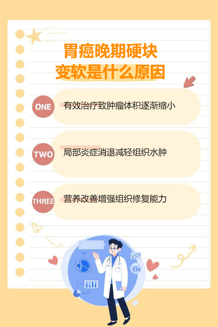胃癌晚期硬塊變軟可能是由於腫瘤縮小、局部炎症消退、營養狀況改善等。
