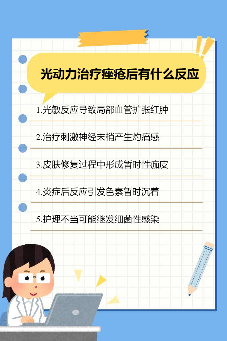 光動力治療痤瘡後可能出現皮膚紅腫、疼痛、結痂、色素沈著、感染等反應。