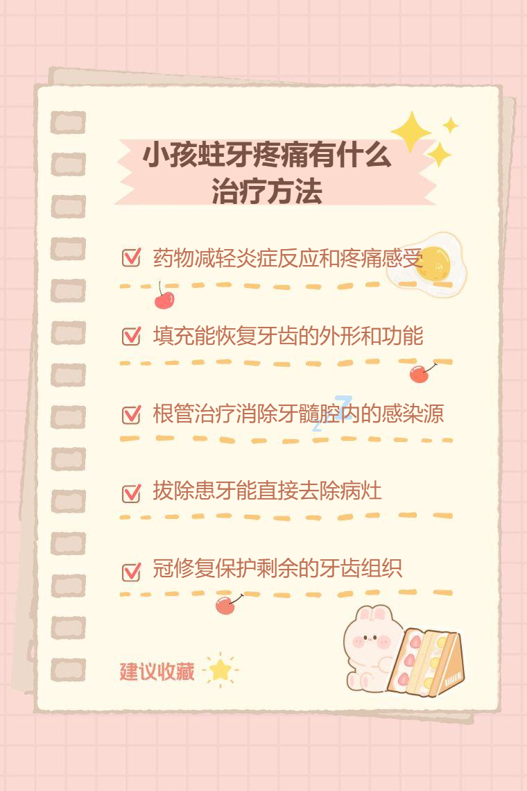 小孩蛀牙疼痛常見的治療方法有藥物止痛、填充治療、根管治療、拔牙、冠修復等。