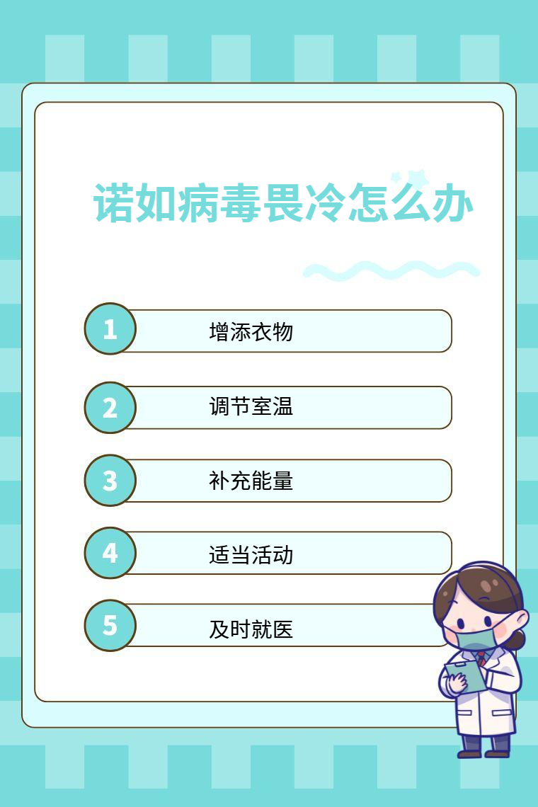 諾如病毒感染後畏冷可通過增添衣物、調節室溫、補充能量、適當活動、及時就醫等應對。