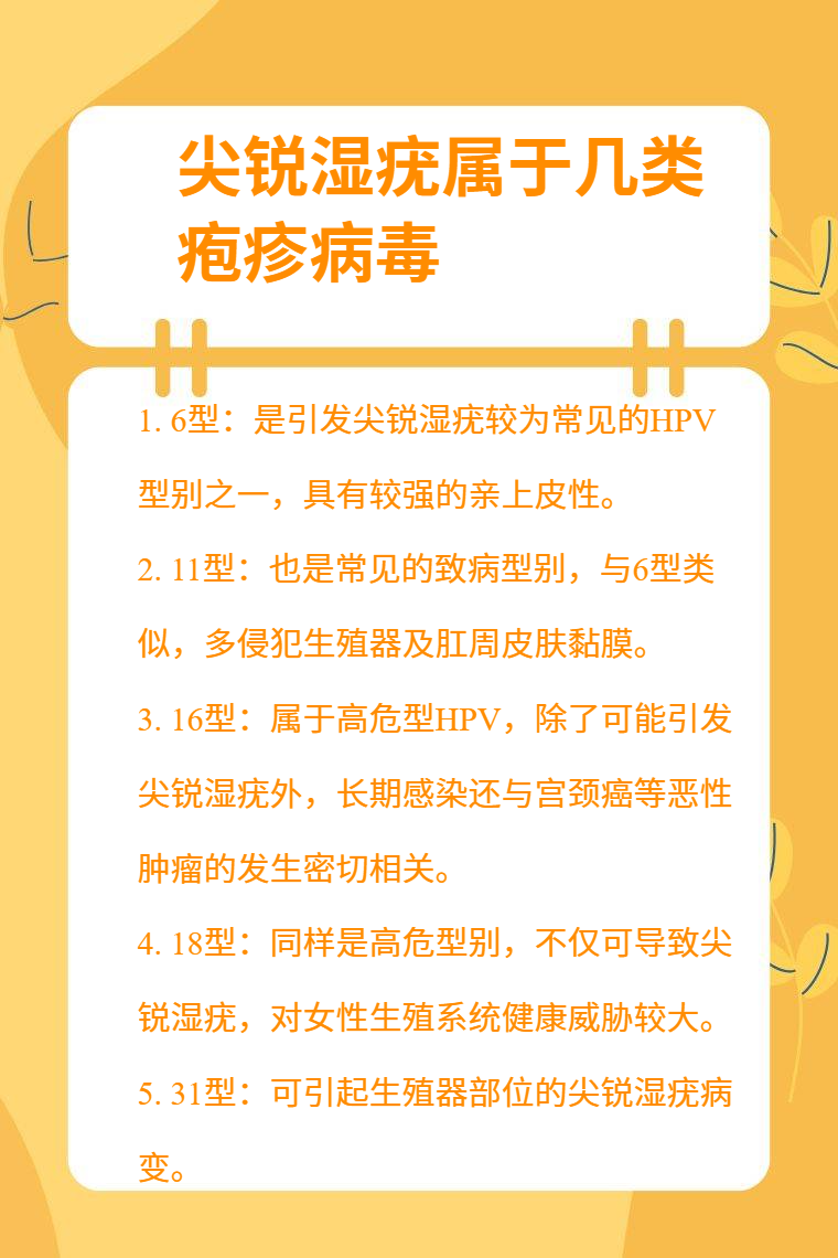 尖銳濕疣並非由皰疹病毒引起,而是由人乳頭瘤病毒HPV感染所致,常見的引發尖銳濕疣的HPV型別包括6型、11型、16型、18型、31型等。