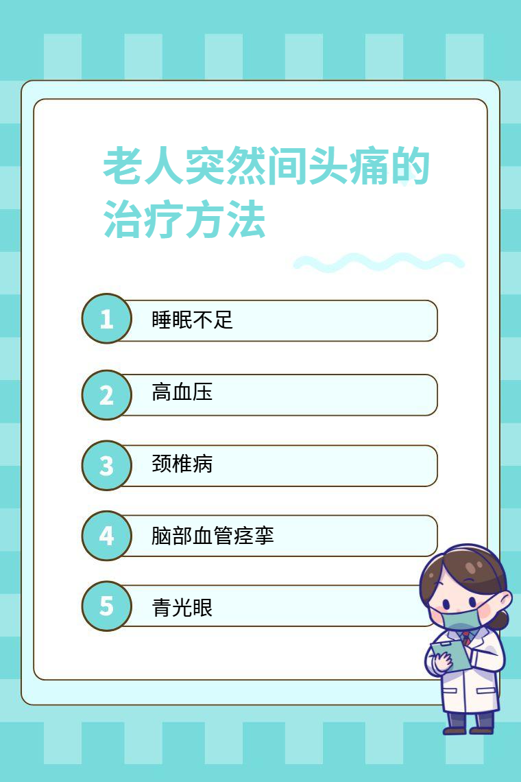 老人突然間頭痛可能是睡眠不足、高血壓、頸椎病、腦部血管痙攣、青光眼等因素,需要針對病因治療,可採取的方法有改善睡眠、控制血壓、治療頸椎疾病、緩解血管痙攣、降低眼壓等。