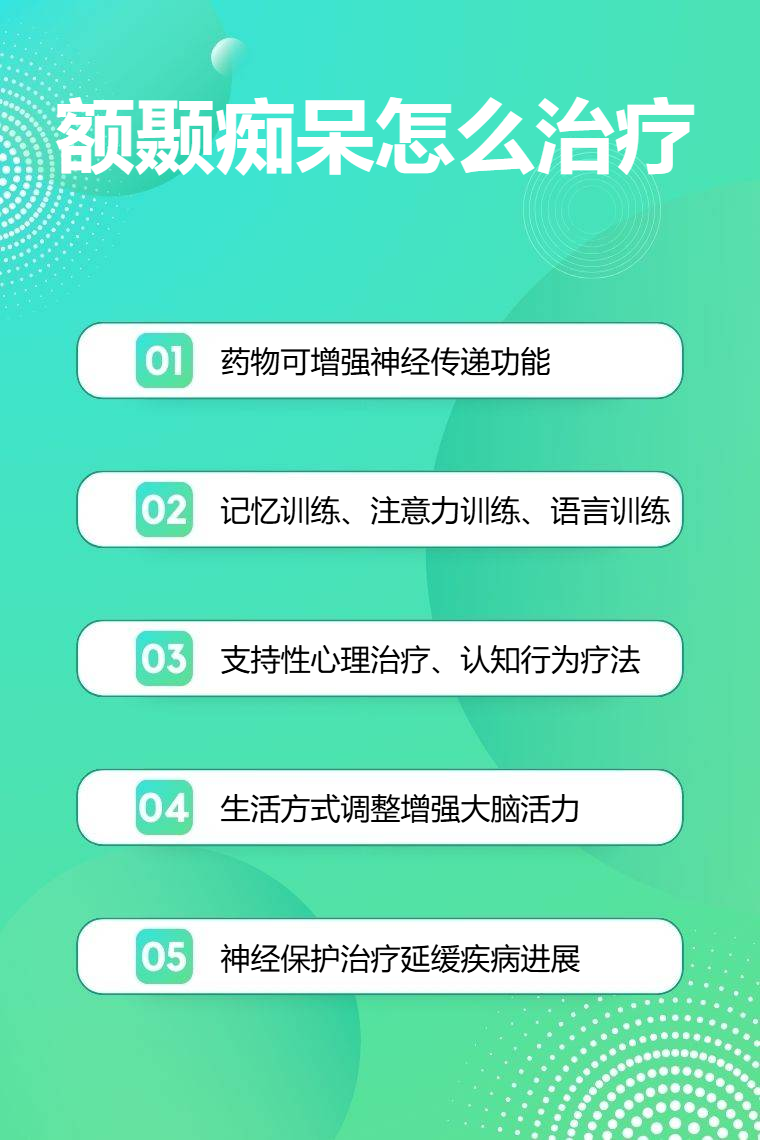 額顳痴呆的治療方法主要有藥物治療、認知康復訓練、心理治療、生活方式調整、神經保護治療等。