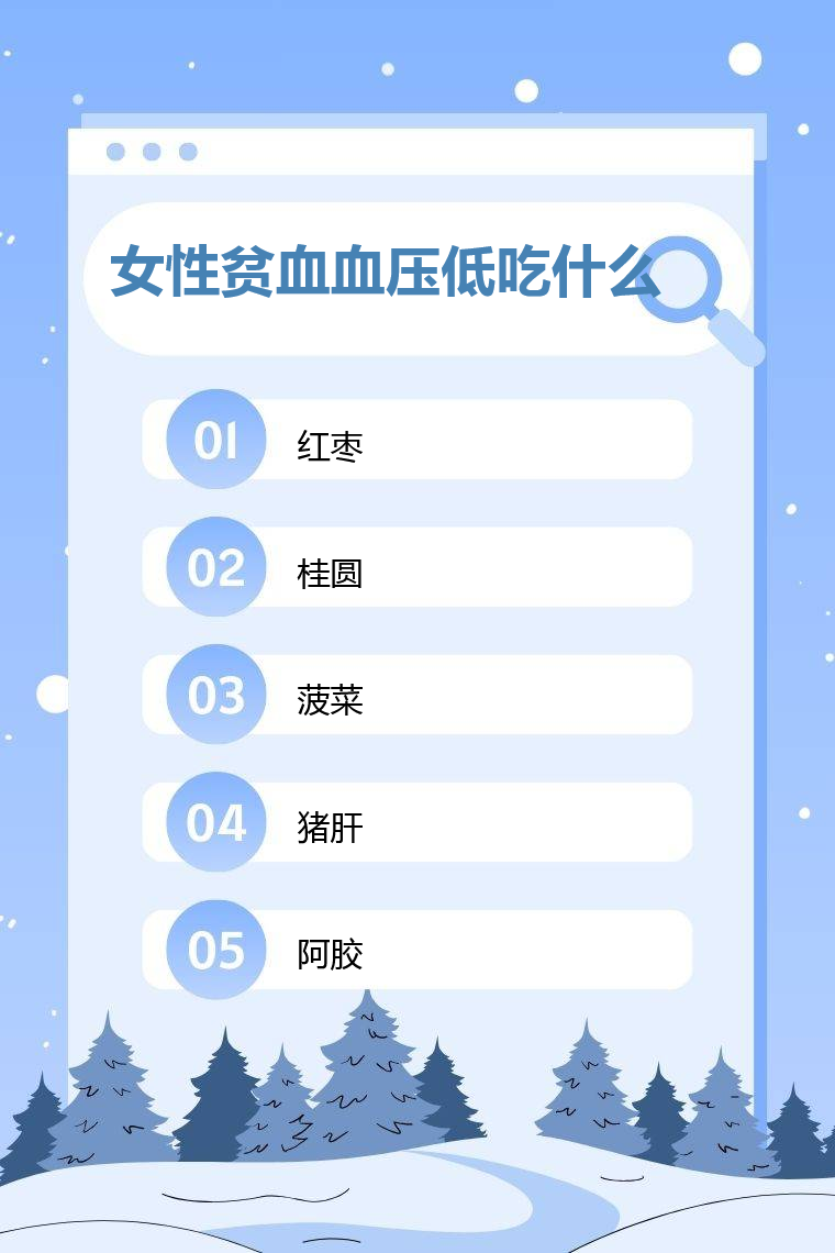 女性貧血血壓低可通過食用紅棗、桂圓、菠菜、豬肝、阿膠等進行調理。