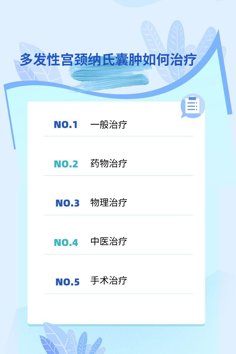 多發性宮頸納氏囊腫的治療方法包括一般治療、藥物治療、物理治療、中醫治療及手術治療等。