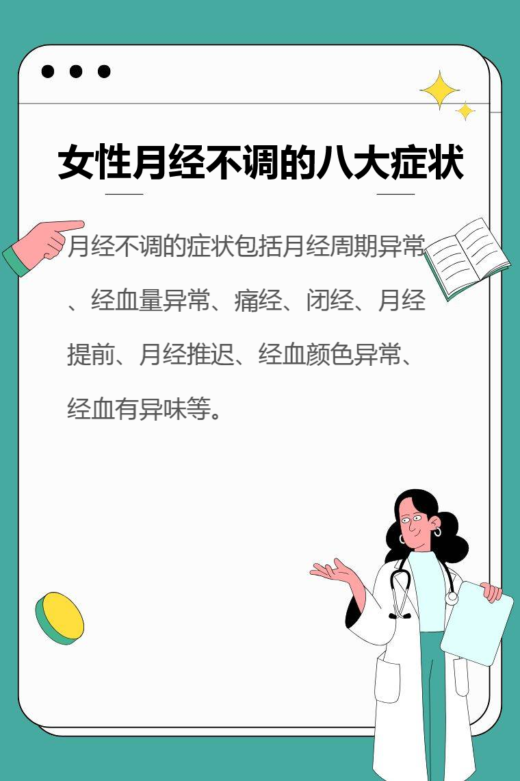 月經不調是女性常見的婦科問題,其症狀包括月經週期異常、經血量異常、痛經、閉經、月經提前、月經推遲、經血顏色異常、經血有異味等。
