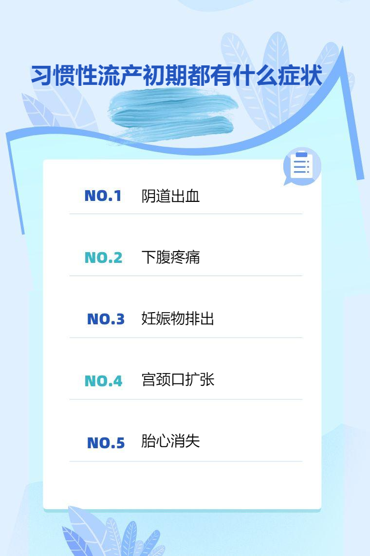 習慣性流產初期的症狀有陰道出血、下腹疼痛、妊娠物排出、宮頸口擴張、胎心消失等。