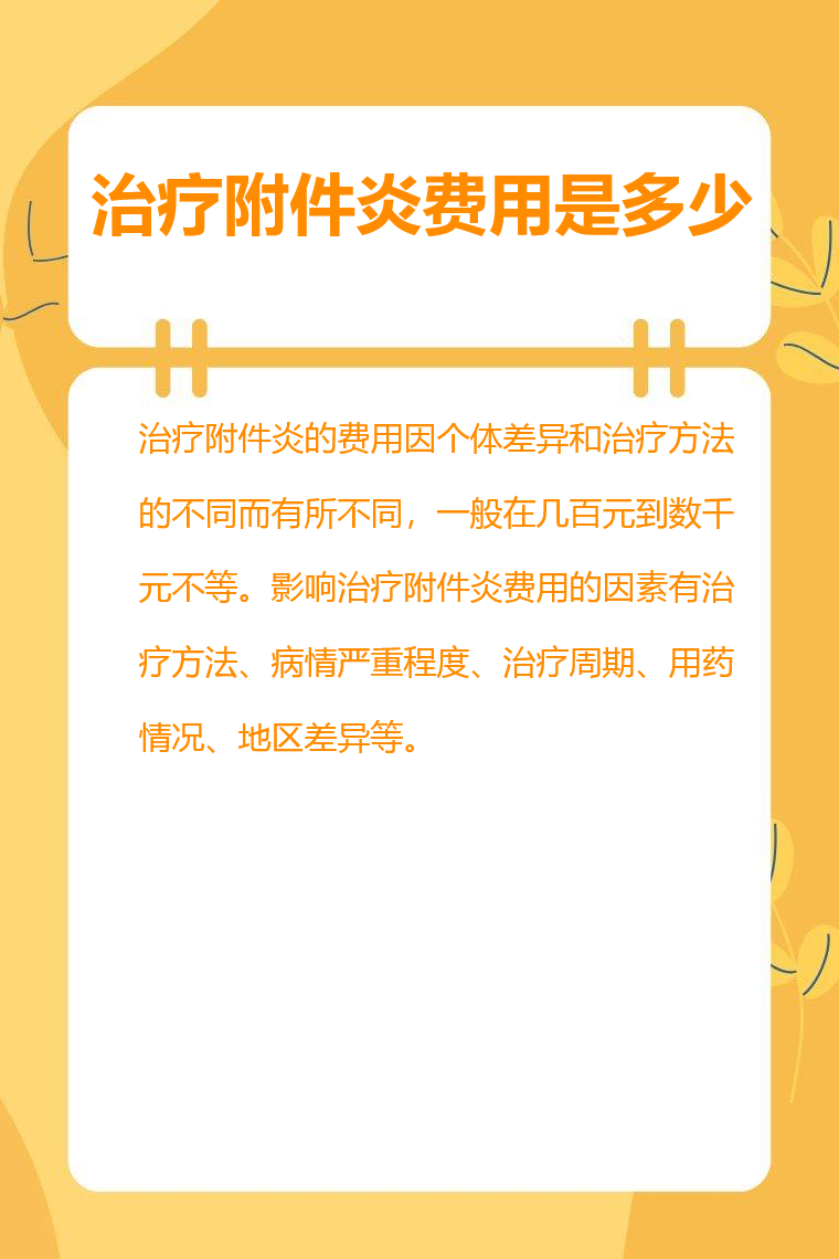 5.地區差異:不同地區的醫療費用水平可能存在差異,這也會導致治療附件炎的費用有所不同。
